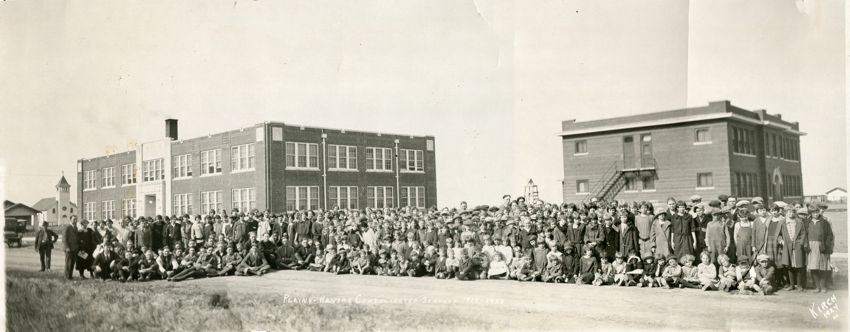 By 1909, there were several schools in the vicinity: #4, 14, 15, 30, 34, 39, 40, 50, 58, 59, 60 and 16. These schools were later consolidated into the Plains Consolidated system #74.