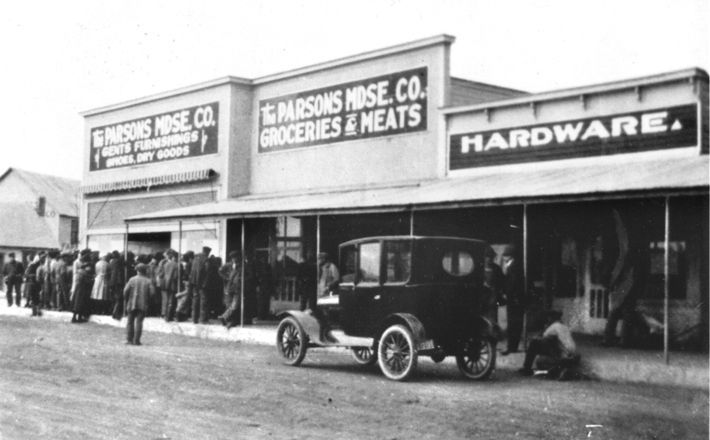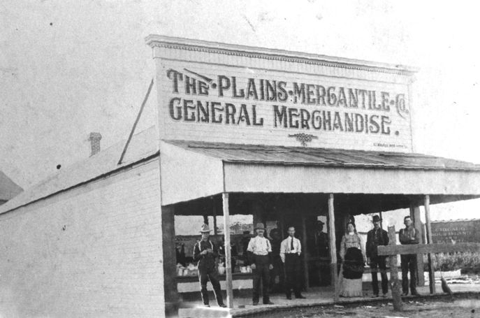 Built in 1909 where Plains State Bank stands today, the first floor housed Elder's Dry Goods Store and the second floor served as the Opera House where all sorts of events were held.