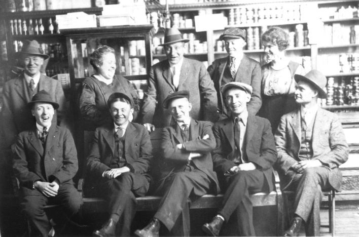 BK: Templeman, Mrs. Frank Hays, Frank Hays, Floyd Maloney, Cara Geisinger. FT: R.A. McPhee, Charley Parson, L. F. Parsons, Roy Traylor, Herb Wooten.