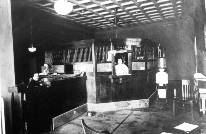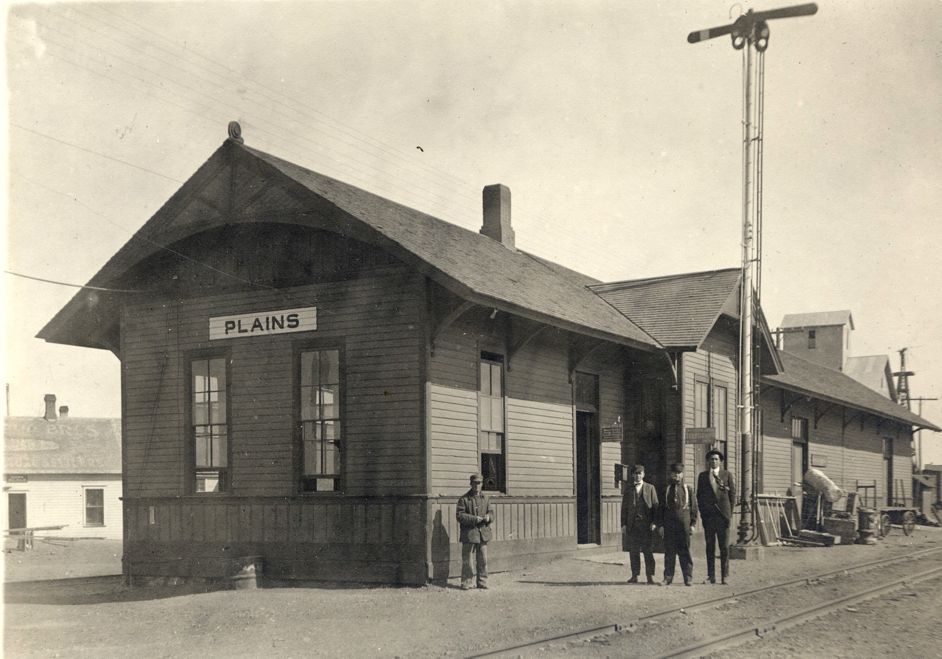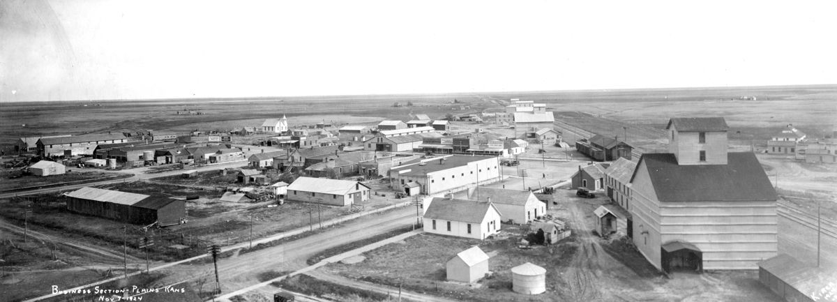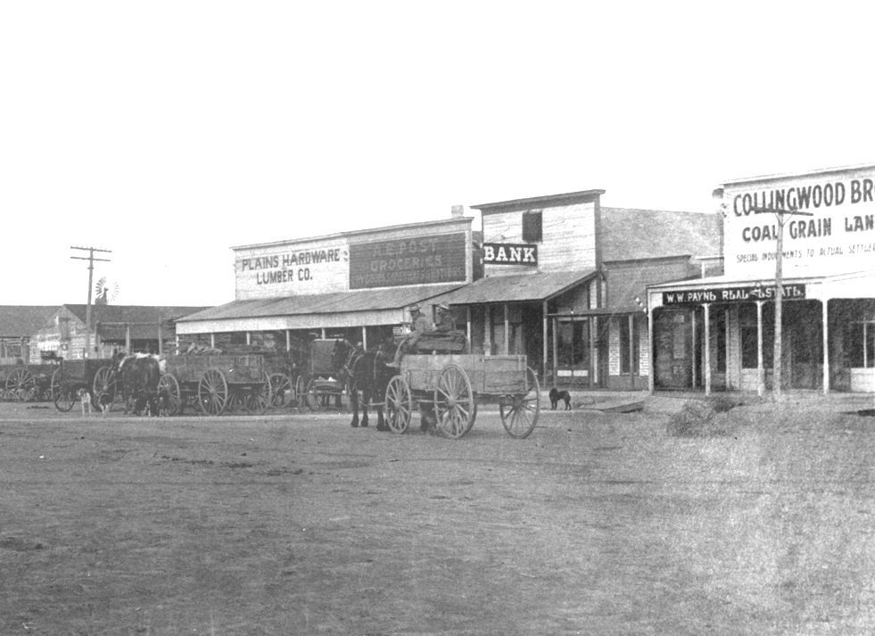 The original location of Plains State Bank was on the East side of Grand Ave.