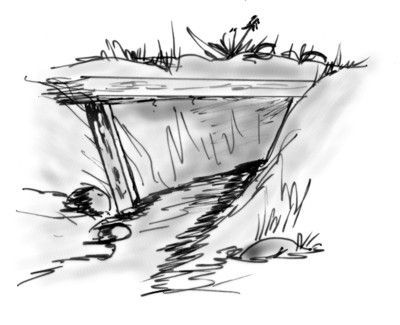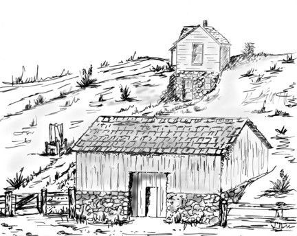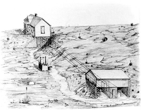 The house was acquired by the Chamber of Commerce by means of a trade for another house, and in May, 1940, the Dingess family moved in. The above sketch by Harry Wells illustrates the plans they had to rebuild the tunnel and barn.
