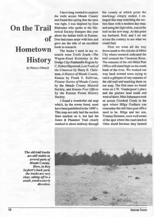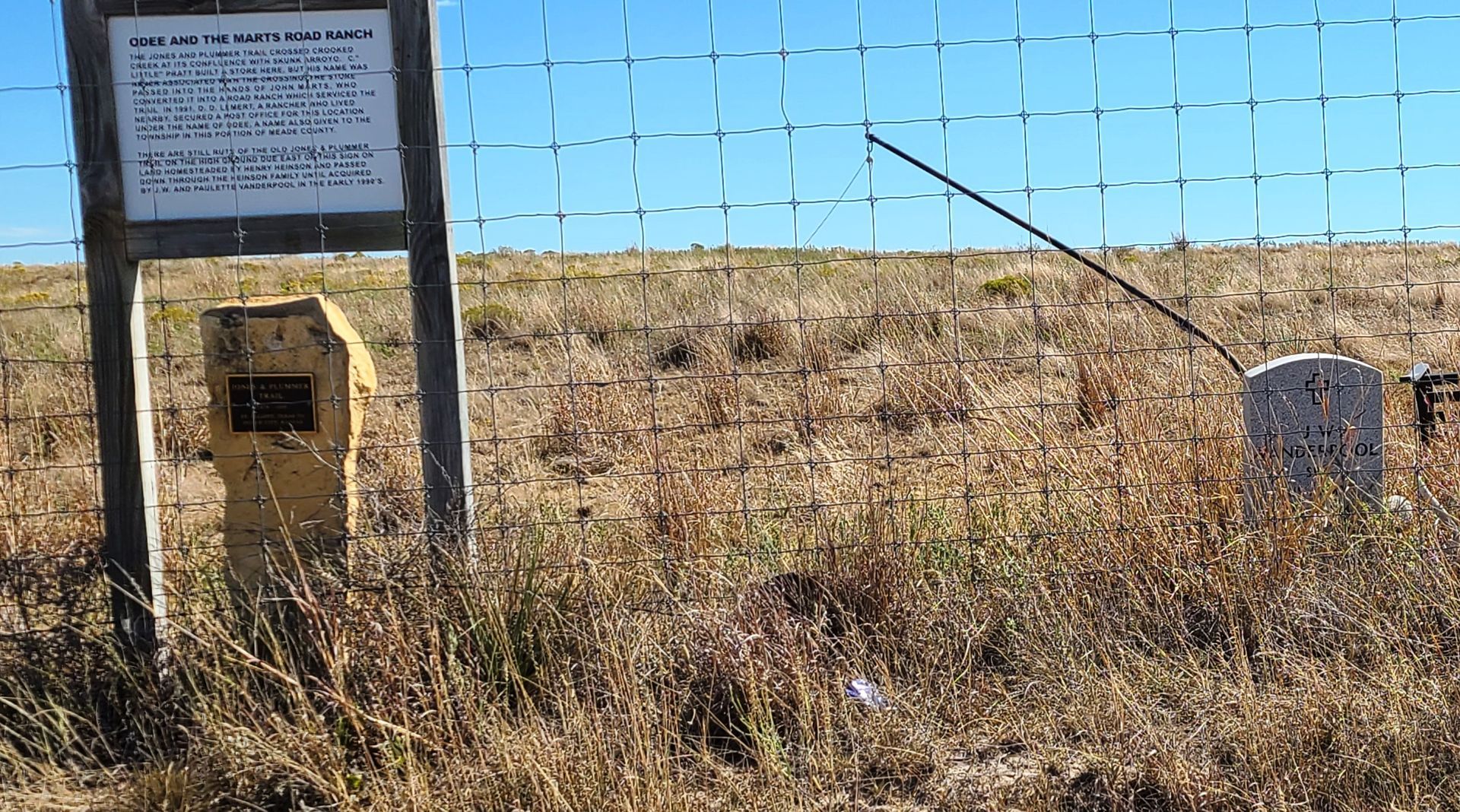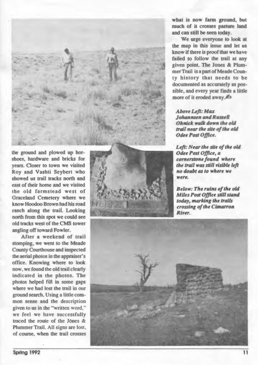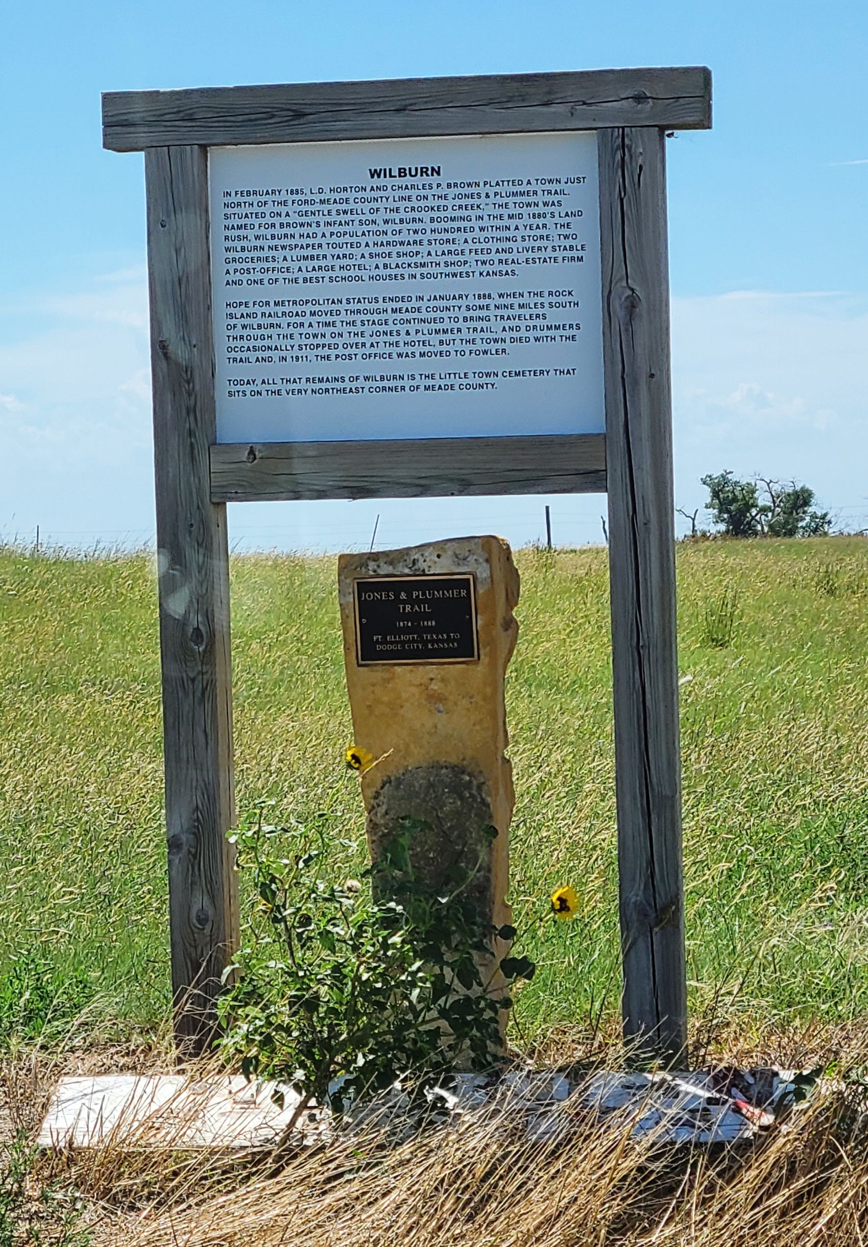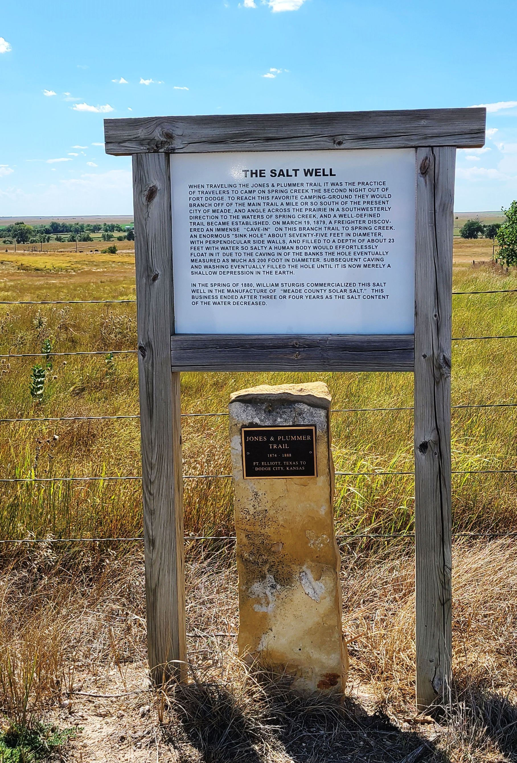 There are still traces of the Jones and Plummer Trail across Meade County. The ruts are only visible now in pastures and on hard, high ground where they are less apt to be washed away. There are some ruins of the Old Miles Post Office on the south bank of the Cimarron River, but all the other way stations and boom towns are long gone. Plowed under by the settler’s plow and blown away by the winds of time, the Jones and Plummer Trail became just another chapter in our history.