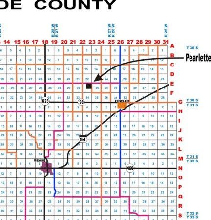 With the land rush a reality and in anticipation of the arrival of the "D M. & A," Jobling and Robert Wright filed a plat for the town of Pearlette on June 1, 1886. The town was to stand on a 1,460 feet square of the NE/4 Section 27, Township 30, Range 27.