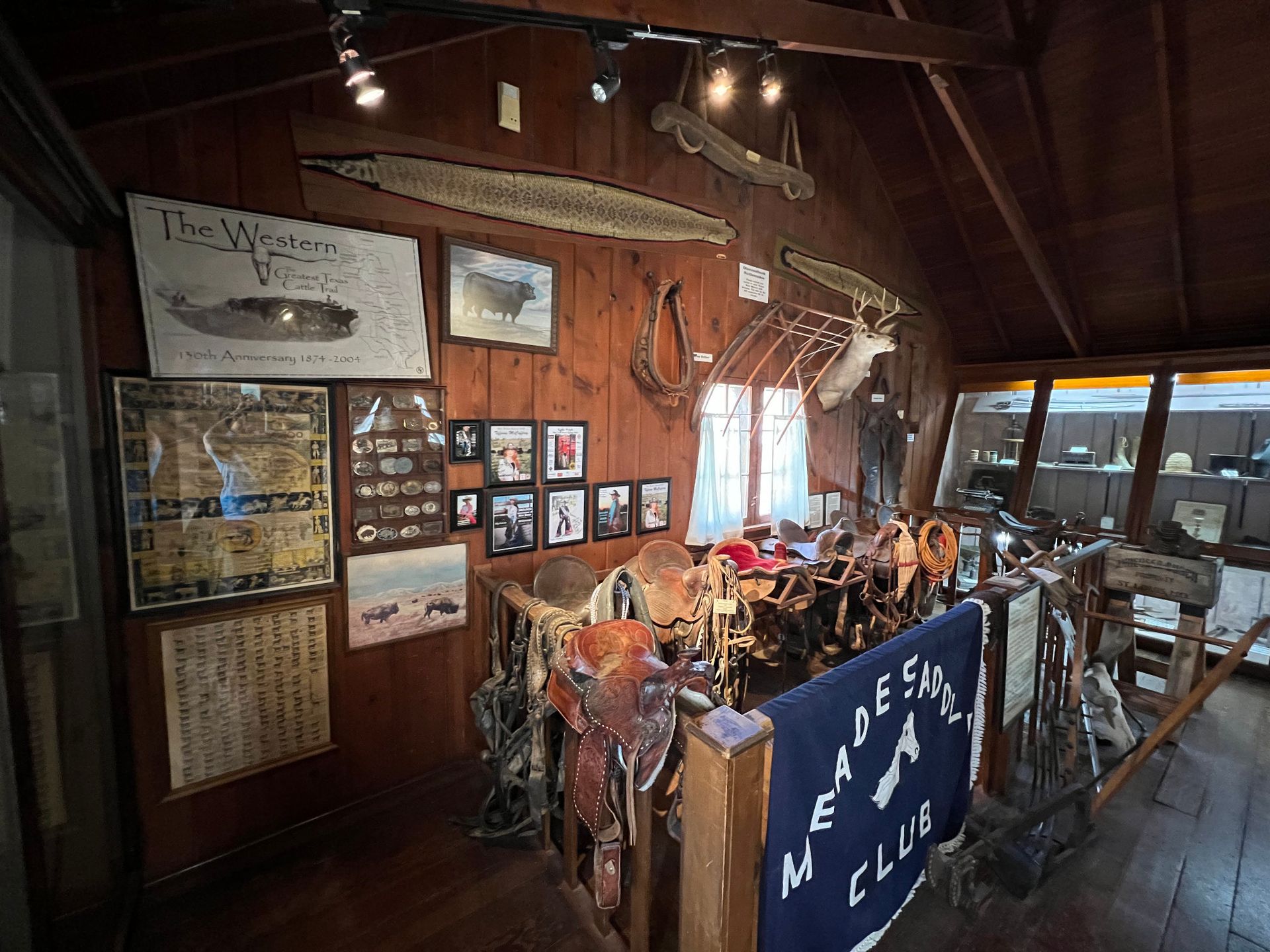 Meade's major tourist attraction, the Dalton Gang Hideout, was formerly the home of Eva Dalton Whipple, sister to the infamous Dalton Gang. Eva Dalton came to Meade in the mid 1880's, and was married to J.N. Whipple, a Meade merchant, in 1887. Whipple built the house which still stands at the corner of Pearlette and Green Streets in Meade for his bride. Years after the couple left Meade a deep rain wash covered with timbers and earth was discovered; a tunnel from the house to the barn built into the hillside below. Legend has it the tunnel was used by the gang to come and go undetected by the law.